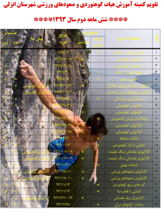 تقویم آموزشی 6 ماهه دوم هیات کوهنوردی و صعودهای ورزشی شهرستان بندر انزلی