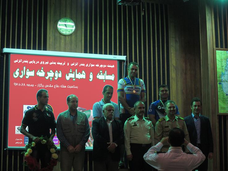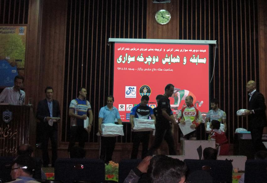 در مراسم اختتامیه پیش از اعلام و تقدیر قهرمانان مسابقه، از آقایان محسن دلیل حیرتی و مجید ثابت فرد که در مسابقات جهانی پیشکسوتان اتریش شرکت کرده بودند و همانطور مقامات و حامیان برگزاری تجلیل به عمل آورده شد. در پایان به 10 نفر از شرکت کنندگان در همایش نیز به قید قرعه جوایزی اهدا گردید. لازم به ذکر است که این مسابقات به میزبانی هیئت دوچرخه سواری بندرانزلی و با همکاری اداره ورزش شهرستان بندر انزلی و هیئت دوچرخه سواری استان و فرماندهی نیروی دریایی منطقه چهارم برگزار گردید.