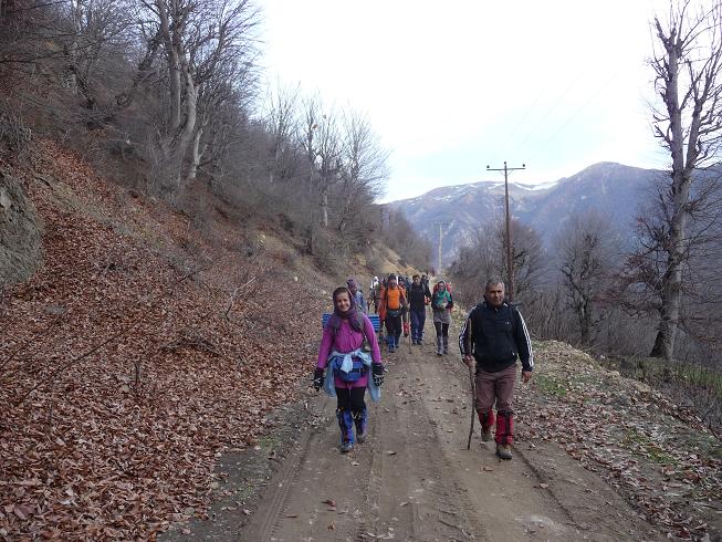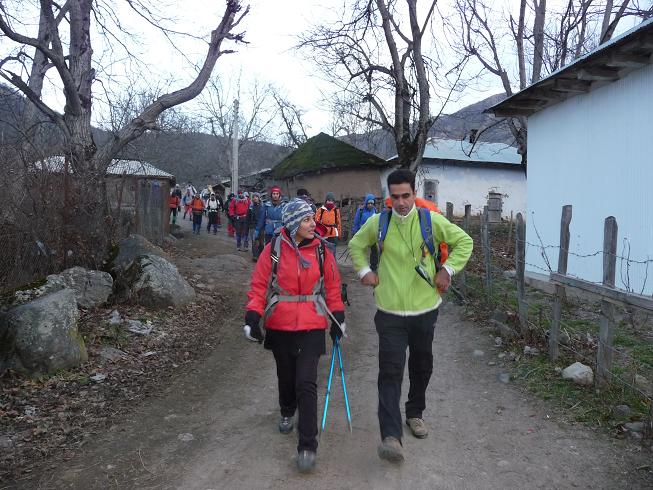 مینی بوس با ده دقیقه تاخیر در ساعت 3:50 به بی بی حوریه رسید. پس از سوار شدن دوستان در مسیر ساعت 4:15 به همراه مینی بوس گروه آریا که در جلوی بیمارستان بود به راه افتادیم. ساعت 4:55 به سه راه پونل رسیدیم. سمت راست را به سمت پره سر و تالش ادامه می دهیم. ساعت 5:00 به پره سر و هفت دقیقه بعد از تابلو نیروگاه پره سر که سمت راست جاده است عبور می کنیم. از این جا تا تالش 25 کیلومتر باقیست. پس از عبور از کنار تابلوی محله های کیشه خاله (5:15) – گیسوم (5:17) – تقطیر سرا – وازده – خلیف آباد – جنگه میره ( تا تالش 10 کیلومتر باقیست )- کشاور محله – افندی – کاربند – تابلوی اسالم (که به سمت راست می رود) در ساعت 5:45 به تالش ( هشتپر ) رسیدیم. داخل شهر بعد پل جاده سمت چپ را که در ابتدای آن مجسمه یک کوهنورد است وارد می شویم. پس از عبور از ماشین خانه (6:05) – کیشون بن (6:15) – کسمه جان (6:35) – زربیل (6:45) – در ساعت 7:07به ییلاق مریان (منطقه ای خوش آب و هوا و دارای آثار تاریخی) می رسیم. حدود پنج دقیقه بعد از مینی بوس ها پیاده شدیم. ارتفاع در حدود 1108 متر است. پس از صحبت های سرپرست و توضیحاتی درباره مسیر در ساعت 7:35 از کنار کلبه های روستا به سمت رودخانه حرکت کردیم.