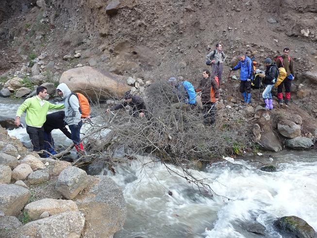 هوا ابری و نسبتا خوب بود. بادی سرد هم کم کم داشت شروع به وزیدن می کرد. در همان ابتدای مسیر باید از رودخانه خروشان آنجا عبور کنیم که نیم ساعتی طول کشید.
