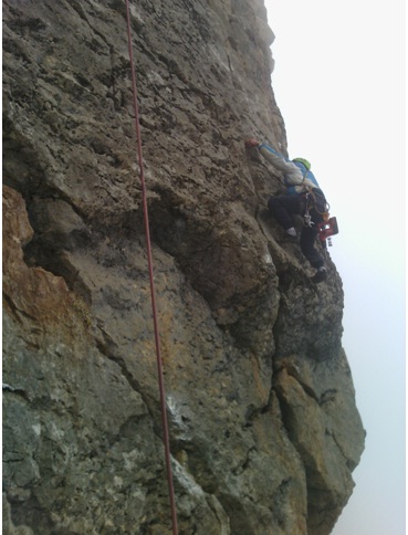 بزرگترین مشکل ما سرمای زیاد دیواره بود که به محض دست زدن به سنگها دستها یمان را در آستانه یخ زدگی قرار می داد. من و حجت مسیر دوم را آغاز کردیم و من صعود کردم و در نقاط مناسب ابزارگزاری می کردم. روی ابزار نشسته و با دریل برای میانیها سوراخکاری می نمودم. سرانجام کارگاه نیز نصب شد. حجت و خانم زهره افقی نیز میانیهای تکمیلی را با دریل نصب نمودند.