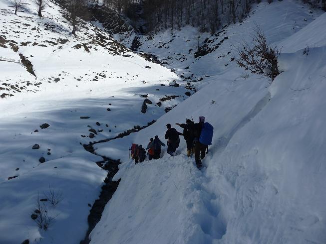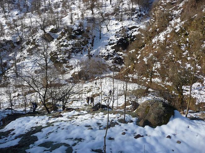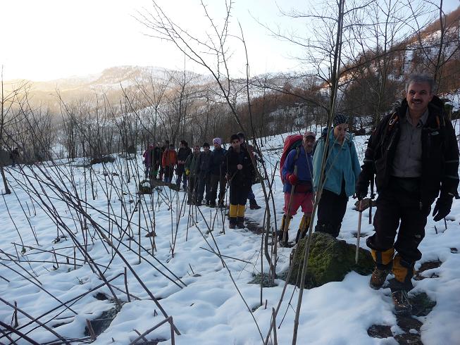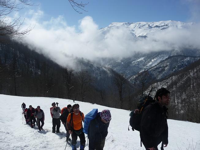 زیر گرمای سوزان آفتاب زمستانی و با تمرین برف کوبی چند نفری از دوستان به طوریکه تا زانو و گاهی بالاتر در برف بودیم به بیست دقیقه ای یال در ارتفاع 1835 متری رسیدیم و کنار درخت بزرگی توقف کردیم و با تصمیم سرپرست در ساعت 12:15 صعود به پایان رسید.