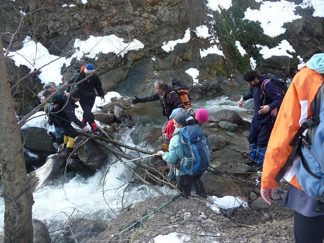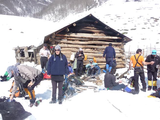 ساعت 10:55 به کلبه مسیر در ارتفاع 1550 متری رسیدیم. قندیل های زیبای یخ روی بعضی قسمت های سنگ های رودخانه قبل کلبه بر روی جریان خروشان و زلال آب همچون حفاظ های بلورین آویزان بودند.