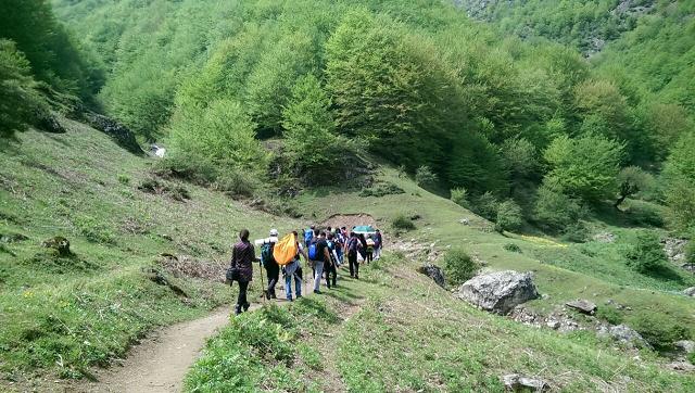 در ابتدای راه به دلیل تعدد گروه های دیگر از شهرهای مختلف ،مسیر شلوغی را گذراندیم و گروه ما با همکاری دوستان با نظم و ترتیب راه خود را در پیش گرفت. پس از یک ربع طیّ طریق به درخت گردو رسیدیم.