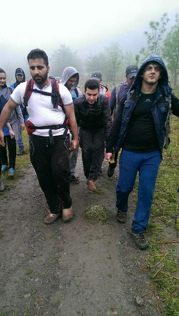 البته در میانه ی راه برای یکی از دوستان پیچ خوردگی مچ پا پیش آمد که دیگر همراهان به درست کردن برانکارد اقدام کردند.