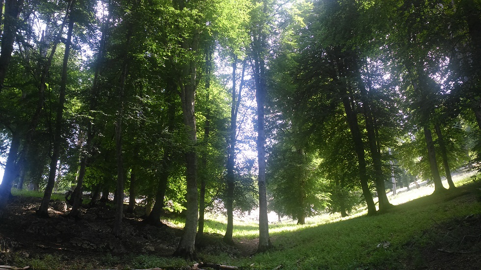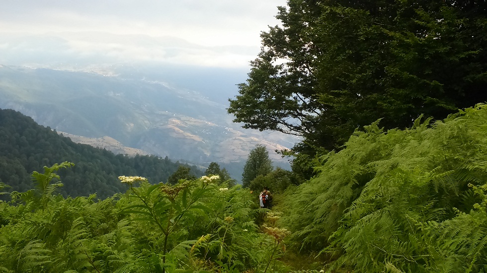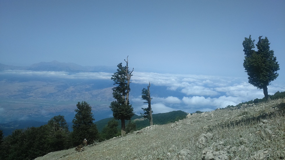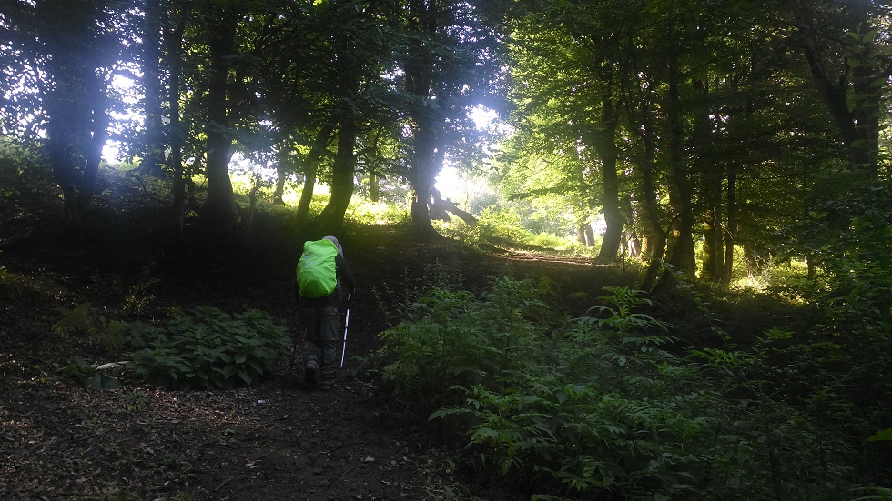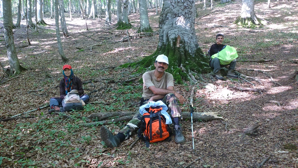هوا گرم بود و در بالا باد ملایمی بود که صعود را برایمان آسان تر می کرد. در ساعت 7:44 در ارتفاع 1009 متری و در یک قسمت از مسیر جنگلی بسیار زیبا که پوشیده از درختان سر به فلک کشیده بود و مانع ورود نور خورشید می شدند ، صبحانه خوردیم. پس از صرف صبحانه در ساعت 8:07 به راه افتادیم.