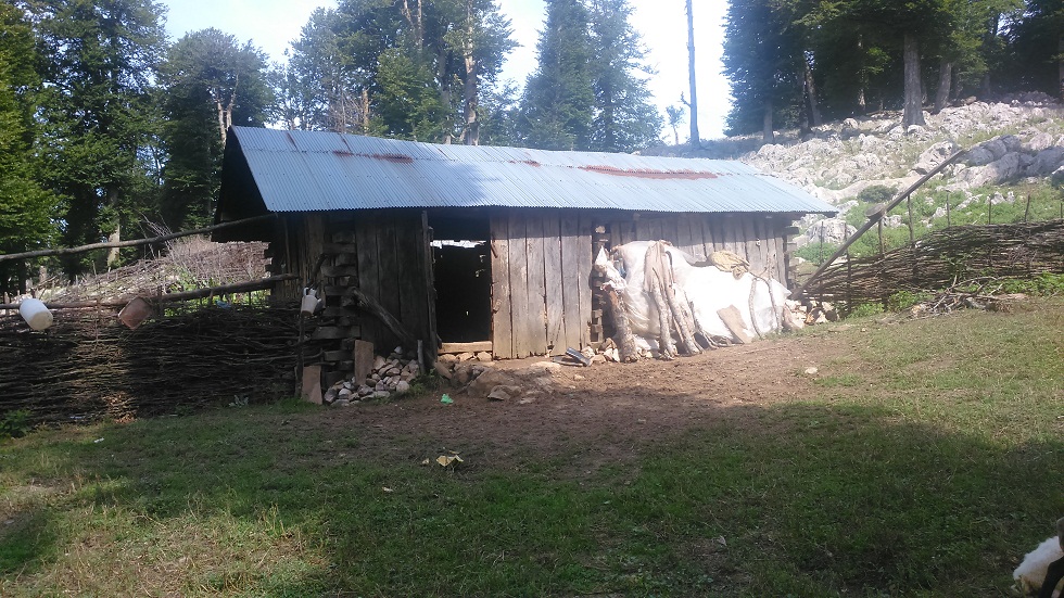 مسیر رسیدن به روستای جیرونی یک مسیر جنگلی زیبا می باشد و از بکر ترین و طولانی ترین مسیر های صعود به قله درفک است. به کمک جی پی اس و پاکوب موجود در مسیر در ساعت 10:25 به روستای جیرونی در ارتفاع 1812 متر رسیدیم. در این روستای کوچک چند کلبه و کمی بالاتر در ارتفاع 1896 متری چشمه بسیار خوب و خنکی وجود دارد. به همراه عطاالله پور میرزایی از ساکنین روستای جیرونی به سمت چشمه رفتیم. ده دقیقه بعد کنار چشمه بودیم. آقا عطاالله به ما گفت لطفا به هیات یا مسئولین که می توانند کاری انجام دهند اطلاع دهید که این چشمه را لوله کشی مناسب انجام دهند. تنها آب منطقه ، همین چشمه روستای جیرونی است و این آب برای کوهنوردان و اهالی بسیار حیاتی می باشد. وظیفه ما بود که این درخواست را در این گزارش و همچنین در تلگرام اخبار هیات کوهنوردی گیلان منعکس کنیم. امیدوارم هیات استان اقدامی در این راستا انجام دهد.