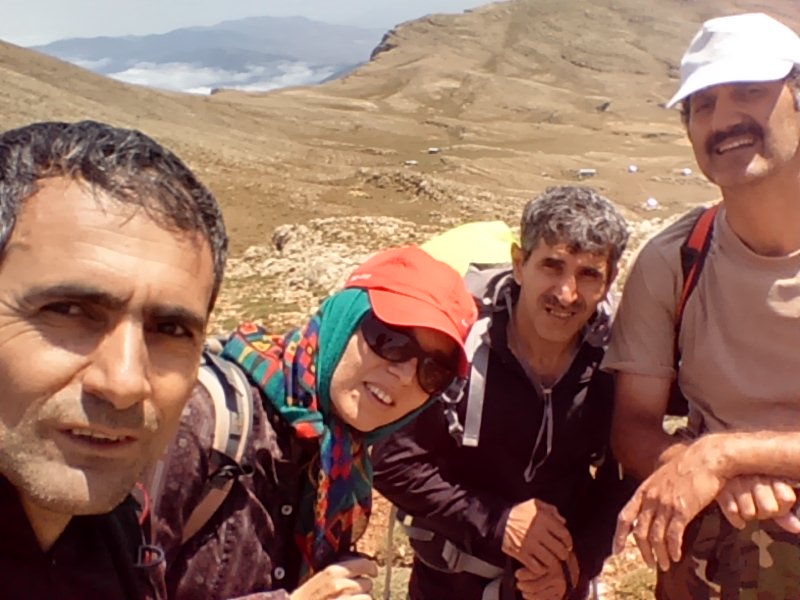 پس از گرفتن عکس ، کمی پایین تر به سمت مسیر برگشت به دور از باد ناهار را صرف کردیم و پس از مقداری استراحت در ساعت 2:21 به راه افتادیم. اقای نباتی شغل در فرصت ناهار چایی نیز دم کردند و پایین تر در مسیر قبل چشمه چای هم نوشیدیم که بسیار چسبید. ساعت 4:24 به چشمه جیرونی رسیدیم. آبی برداشته و حرکت کردیم. در ساعت 6:55 به مکان صبحانه و 7:45 به روستای راجعون رسیدیم.