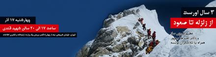 فدراسیون کوهنوردی و صعودهای ورزشی برگزار میکند: برنامهی "سه سال «اورست»؛ از «زلزله» تا «صعود»" با ارائه گزارش توسط «عظیم قیچی ساز»، «دکتر علیرضا بهپور» و همچنین همراهی تلاشگران «لوتسه» / چهارشنبه 17 آذر ماه 1395از ساعت 17 الی 20 در سالن اجتماعات شهید «قندی» / ورود برای عموم علاقهمندان بلامانع است/ آدرس: تهران، خیابان شریعتی، بعد از چهارراه قصر، ورودی یک وزارت ارتباطات و فناوری اطلاعات