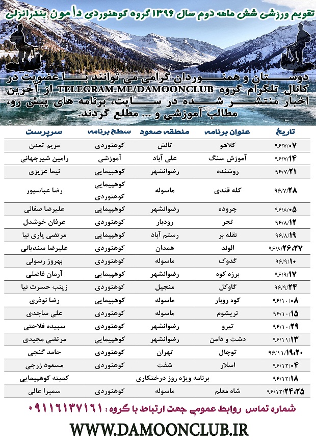 برنامه فصل پاییز و زمستان 96 گروه دامون بندر انزلی