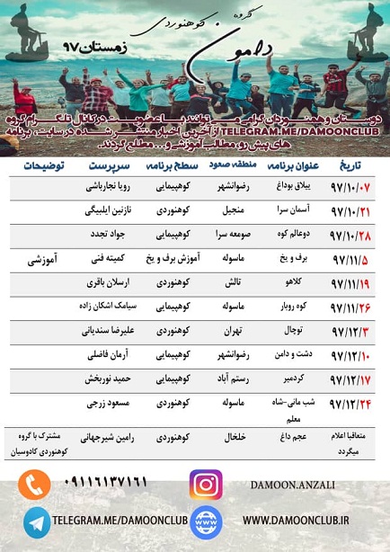 برنامه فصل زمستان 97 گروه دامون انزلی