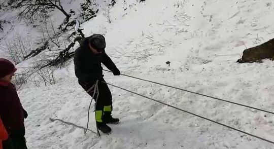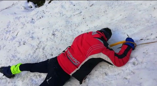 پس از آن فرود با استفاده از قارچ برفی کار شد و سپس نحوه سر خوردن با کلنگ و بدون ابزار هم آموزش داده شد.