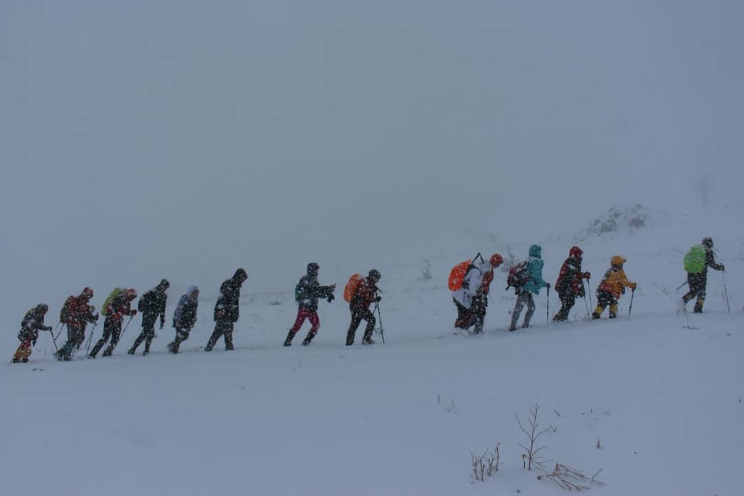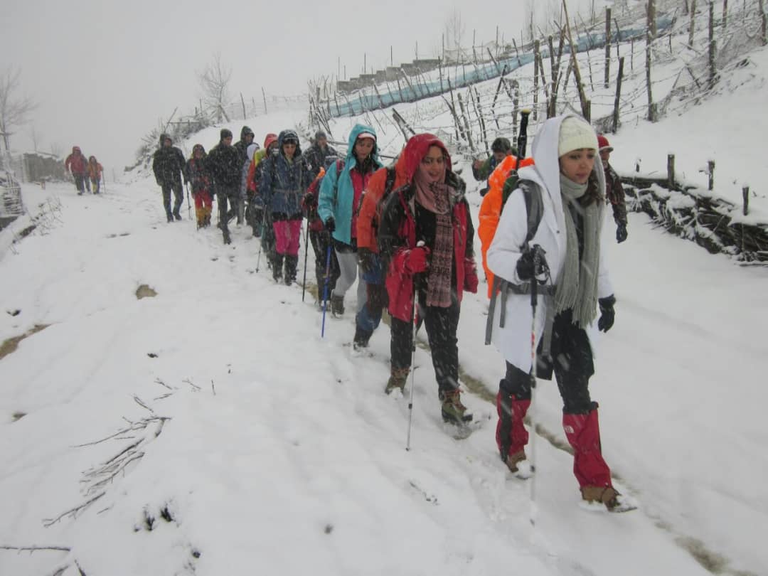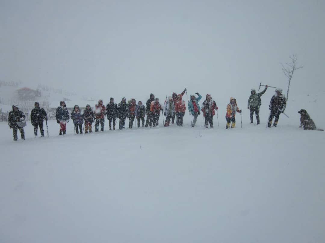 باریدن برف شدیدتر شده بود ولی گروه با نظم به حرکت ادامه میداد. برف تازه روی زمین نشسته بود و احتیاج به ایجاد پاکوبهای جدید داشت که نفرات جلو ایجاد می کردند و نفرات عقب به صورت منظم در مسیر پاکوبها حرکت می کردند. تا ارتفاع ۲۱۰۰ متری رفته و پس از گرفتن عکس گروهی در ساعت ۱۰ صبح به کلبه برگشتیم. روستا پوشیده از برف بود و همه برف بازی کرده و حتی آدم برفی ساختند. پس از صرف نهار و در ساعت ۱:۳۰ دقیقه به سمت انزلی حرکت کردیم و ساعت ۴ وارد انزلی شدیم.