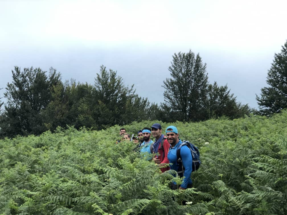 با توجه به فنی بودن برنامه، تمایل سرپرست جهت اصولی تر اجرا شدن آن و همچنین آمادگی هر چه بیشتر همنوردان، قرار بر پیمایش مسیر بیشتر و کاهش زمان استراحت در طی برنامه شد. پس از پیمایش بخشی از مسیر در هوای نسبتا گرم جنگل، ساعت8:40 به محل کلبه های جنگلی زیبایی که در مسیر قرار داشتند رسیدیم و زمان کوتاهی برای استراحت و تجدید قوای همنوردان در نظر گرفته شد. در کنار تمامی زیبایی های مسیر، اثر بارش های تابستانه اخیر گیلان بر افزایش رشد پوشش گیاهی منطقه و گسترش آن تا ارتفاعات بالاتر و شادابی جنگل به وضوح نمایان بود. پس از یک توقف ده دقیقه ای پیمایش دوباره به سمت قله آغاز گردید. حدود ساعت 10 به محل دکل مخابراتی (آنتن) رسیدیم و پس از کمی استراحت، آخرین بخش پیمایش تا قله آغاز شد. با افزایش ارتفاع از محل دکل مخابراتی تا قله، فضا مه آلود و هوا نسبتا خنک تر شد و به این ترتیب شرایط بهتری جهت صعود رقم خورد و در نهایت تمامی اعضا رأس ساعت 11:35 ظهر بر فراز قله زیبای کله قندی محصور در ابرها، حاضر شدند.