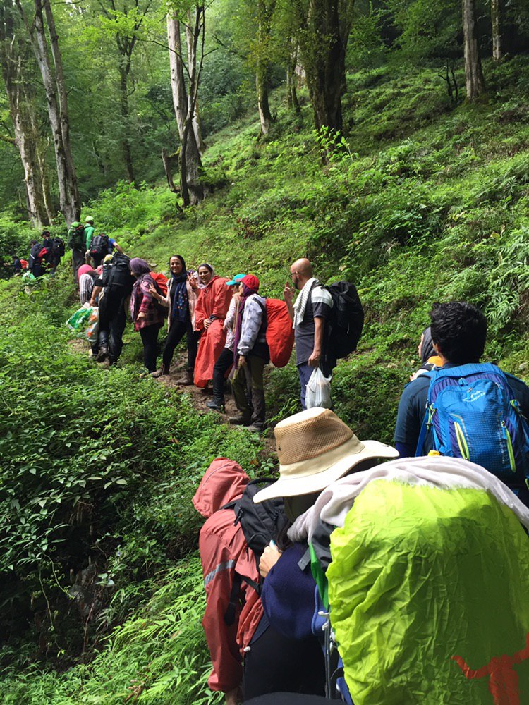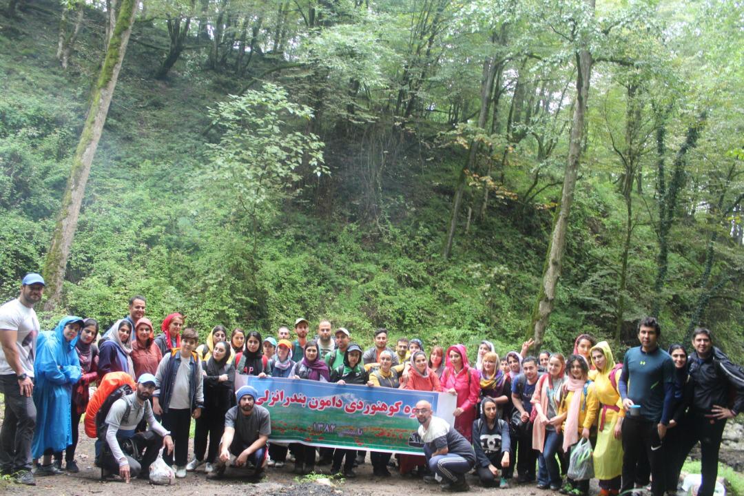 بعد از عبور از رودخانه، مسیر پاکوب جنگل را در پیش گرفتیم. حدود ۴۰ دقیقه بعد به محل استقرار و کمپ کردن رسیده بودیم که باران شروع شد. افرادی که قصد بازدید از غار را داشتند سریع آماده شدند. عده ای دیگر از افراد نیز در همان محل ماندند. برای رسیدن به ورودی غار وارد شیب تند و سنگی شدیم که حدود ده دقیقه ادامه داشت و باران همچنان می بارید. ورودی غار بسیار تنگ و کوتاه بود. به محض ورود به غار وارد مسیر رودخانه ای میشدیم که در ابتدا عمق کمی داشت. همه افراد منظم و با هدلایت و کلاه ،پشت سر راهنما حرکت می کردند. کاملا تاریک بود و صدای جریان آب در داخل غار می پیچید. عمق آب در طول مسیر متغیر بود در برخی نقاط تا یک متر هم میرسید. مسیر پیمایش نیز در برخی از مواردپیچ در پیچ میشد. خفاش در قسمتهایی که دارای سقف بلندی داشت دیده میشد. بعد از حدود یک ساعت پیمایش به مسیر انتهایی و حرفه ای غار رسیدیم که ادامه مسیر نیاز به ابزارهای غار نوردی داشت. مسیر پیمایش شده را برگشتیم. باران قطع شده بود. به محل کمپ برگشته و بعد از صرف نهار در ساعت ۴، گروه بعد از گرفتن عکس یادگاری به سمت اتوبوسها حرکت کرد. مسیر برگشت به واسطه باران صبح کمی گلی بود. ساعت ۶ عصر از سلمانشهر به سمت انزلی حرکت کرده و در ساعت ۱۱:۳۰ دقیقه به انزلی رسیدیم.