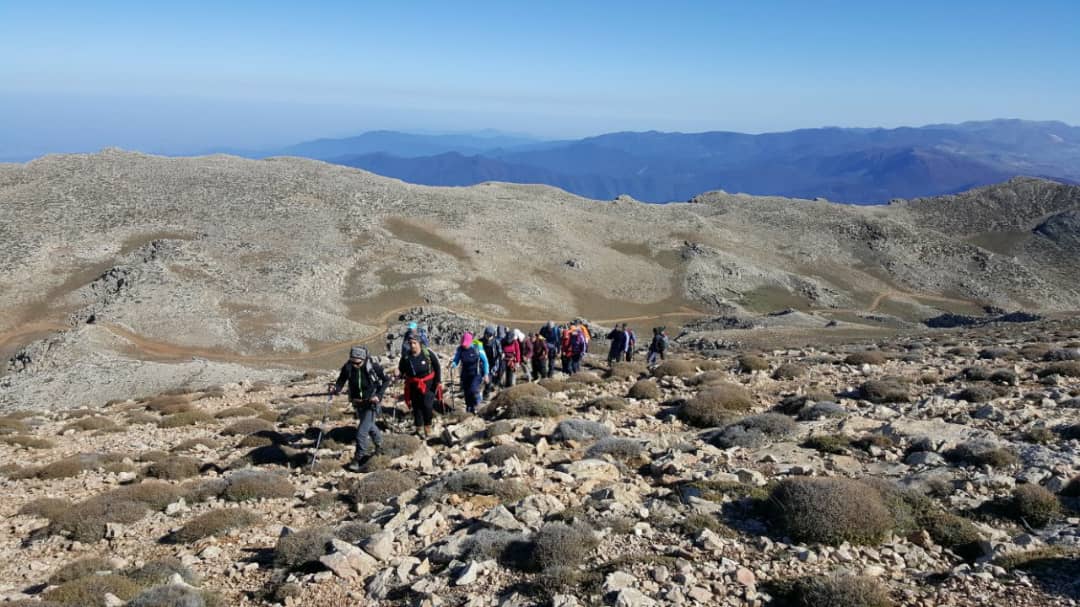 با توجه به نظم و سرعت خوب گروه ما مسیر جاده ای را در پیش نگرفتیم و قالب مسیر را در دامنه های منتهی به قله طی کردیم.کوه بزرگ سماموس که پوشیده از برف بود در جای جای مسیر خودنمایی میکرد.