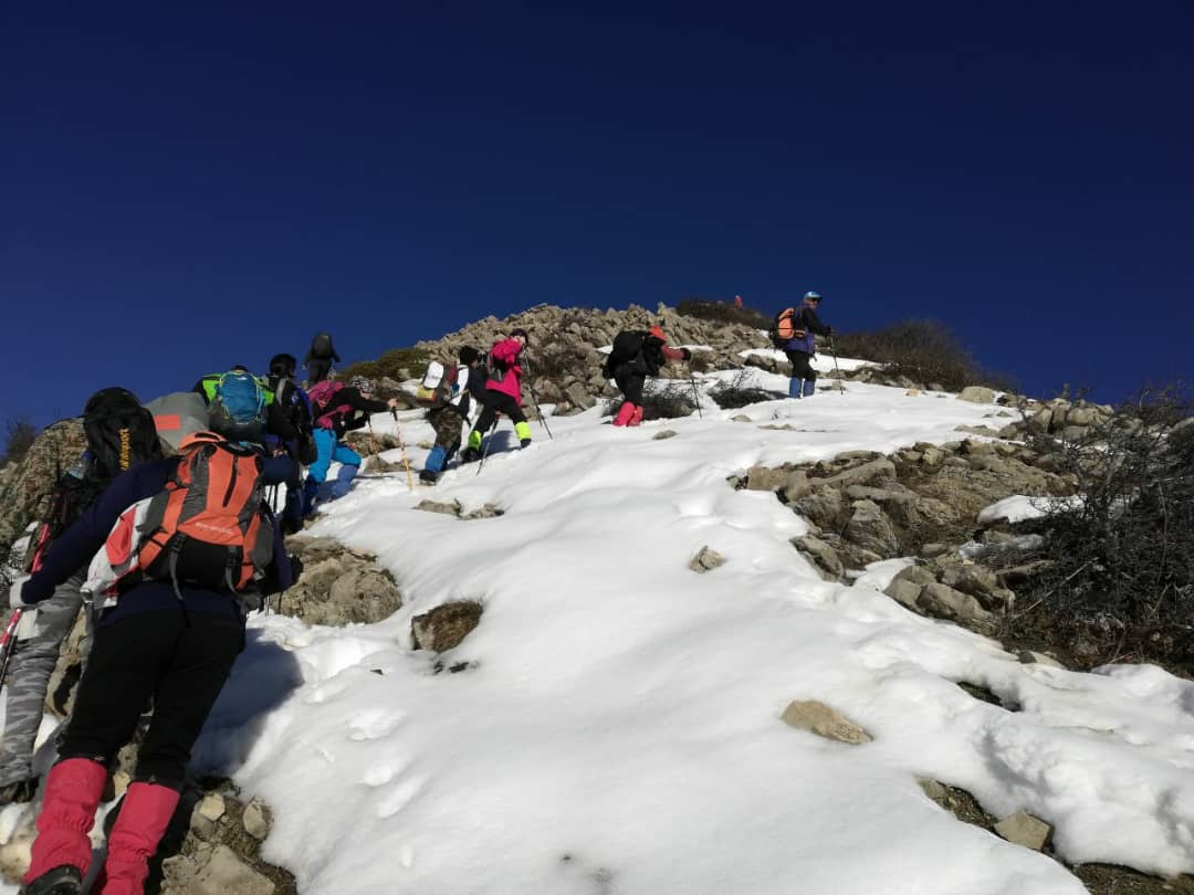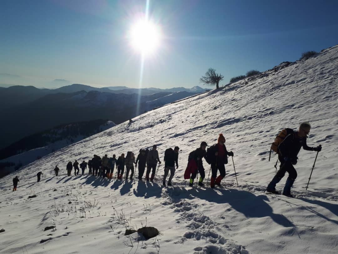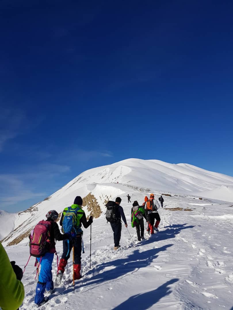 در ساعت 13 گروه به ارتفاع حدود 2850 متری رسید و با اینکه فقط حدود30 دقیقه تا قله مانده بود سرپرست برنامه با مشورت عوامل اجرایی و با توجه به نفرات تیم و برای جلوگیری از خطرات احتمالی پیمایش در تاریکی تصمیم به بازگشت گرفت و پس از عکس دسته جمعی با آخرین تابلو به سمت مینی بوس حرکت کردیم... این نوع تصمیمات سرپرست علاوه بر بار فنی میتونه یه کلاس آموزشی برا نفرات باشه تا نشون بده امنیت و سلامت نفرات گروه بر هرچیزی اولویت داره... مسیر بازگشت چالش خاصی به همراه نداشت و فقط یک برنامه کوچک آموزش عملیه نحوه لیز خوردن در برف انجام شد که علاوه بر بار آموزشی نفرات رو به وجد نیز آورد.