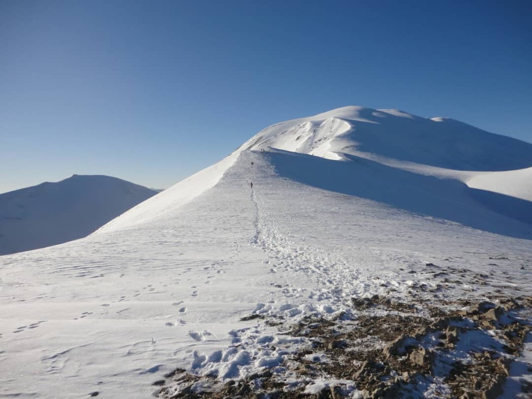 گروه ساعت 7 از مینی بوس پیاده شد و بعد از صحبت های اولیه سرپرست ساعت 7:10 پیمایش آغاز شد... خوش بختانه در طول مسیر از هوای آفتابی مطلوبی برخوردار بودیم و گروه با نظم و نشاط و همدلی با حرکت خود ادامه داد...این مسیر از خارند تا قله با پرچم و تابلوهای نارنجی رنگ که ارتفاع همان نقطه نیز روی آن درج شده علامت گذاری گردیده و تا قله 18 یا 19 تابلو وجود دارد که تابلوی شماره 1 در خارند با ارتفاع حدودا 1700 متر نصب شده و آخرین تابلو نیز روی قله و راهنمای کوهنوردان می باشد. حدود 1 ساعت اولیه مسیر بعد از جاده تا رسیدن به منطقه ی معروف به دوریکله شیب زیادی دارد که میشه گفت یکی از چالش های اصلی این قله است... بعد از رد کرد این شیب تا رسیدن به پاگرد و شیبهای انتهایی مسیر، شیب کمتری داریم و به صورت خط الراس می باشد که برای جلوی گیری از در معرض باد بودن کمی پایینتر از خط الراس حرکت می کردیم.