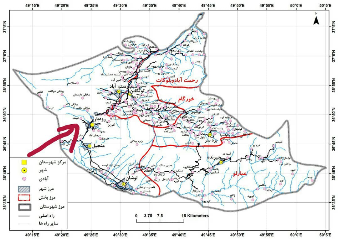شهرستان رودبار در مختصات جغرافیایی 36 درجه و 32 دقیقه تا 37 درجه و 7 دقیقه از خط استوا و 49 درجه و 11 دقیقه تا 50 درجه و 5 دقیقه طول شرقی از نصف النهار مبداء واقع شده است. این شهرستان از شمال به رشت، از جنوب به قزوین و از غرب به شفت محدود میشود (منبع: ویکی پدیا).
