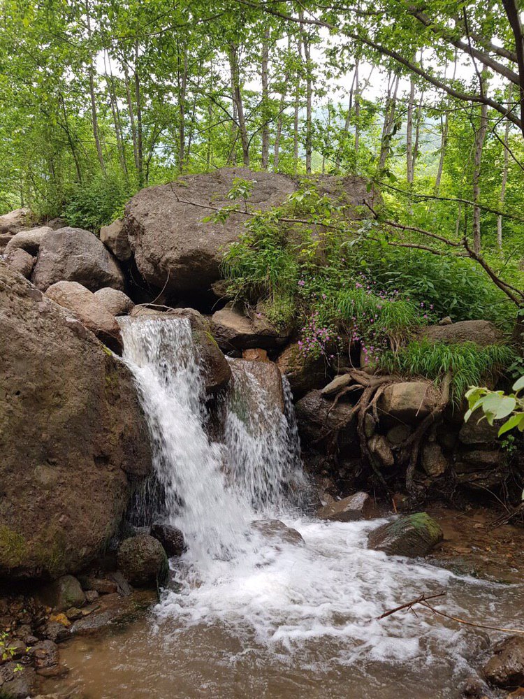 به دلیل تعداد بالای همنوردان ( ۸۰ نفر)، ساعت ۱۰:۵۵ دقیقه در مکانی دشتی قبل از آبشار ،گروه ۱۰ دقیقه برای استراحت و نوشیدن آب توقف کرد و در ساعت ۱۱:۳۰ دقیقه به آبشار زیبای اشکلیت رسیدیم. در جاهایی از مسیر شیب کمی دارد و چندین بار از رودخانه ای که در مسیرمان وجود دارد باید بگذریم که به کمک کوهیاران، همنوردان از سنگ های لیز و پل چوبی آن عبور کردند.