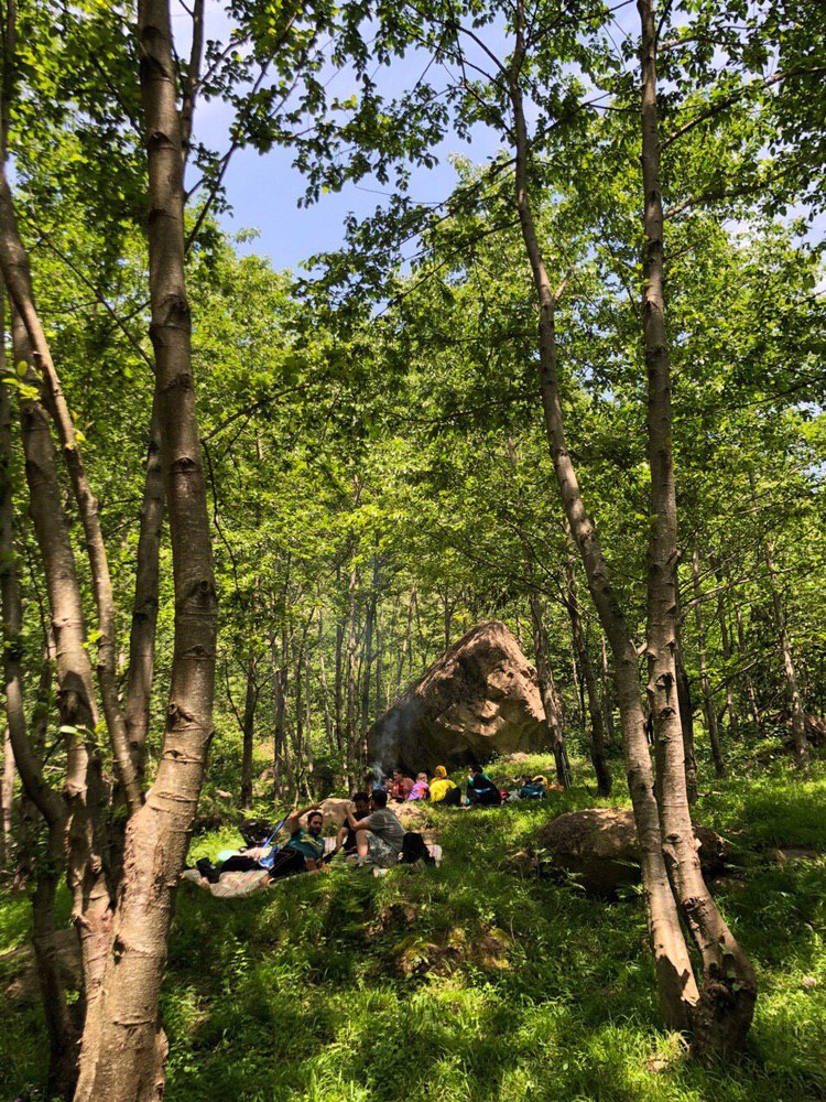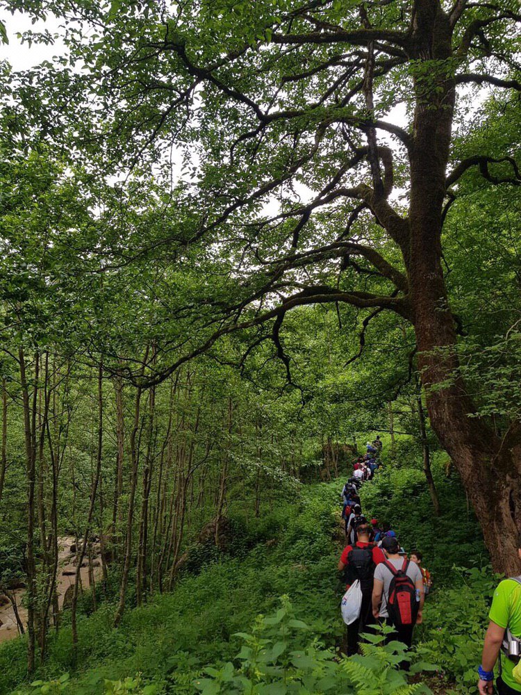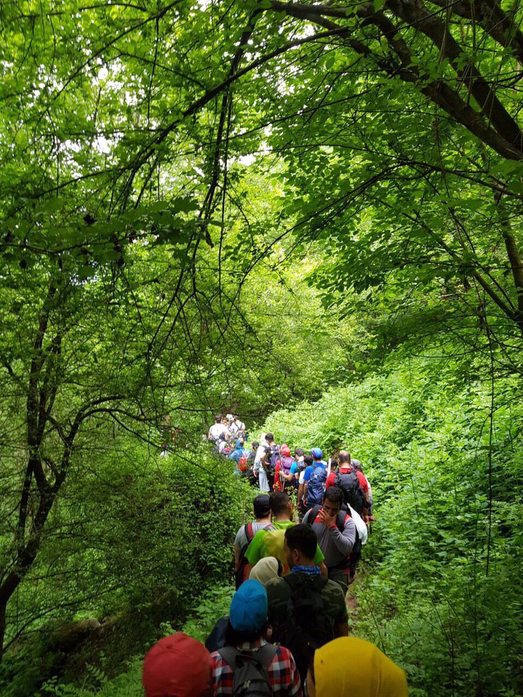 بعد از صحبت های سرپرست برنامه و معرفی عوامل و ذکر توضیحات لازم ساعت ۹:۰۰ به سمت آبشار اشکلیت حرکت کردیم، لازم به یادآوری است که این مسیر، مسیر متداول صعود به قله ی گردسایه (قماش) است که البته در این برنامه هدف ما رسیدن به آبشار اشکیلت بود که در ابتدای این مسیر قرار دارد. بعد از پیمودن شیب اولیه مسیر ساعت ۹:۴۰ دقیقه به دوستان فرصتی برای صرف صبحونه داده شد و بعد گروه دوباره با انرژی به حرکت خود ادامه داد ، مسیر از ابتدا به صورت جنگلی بود.