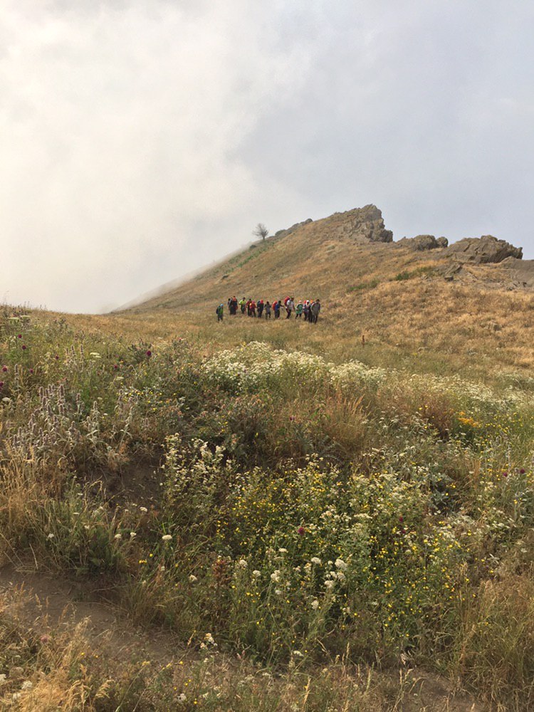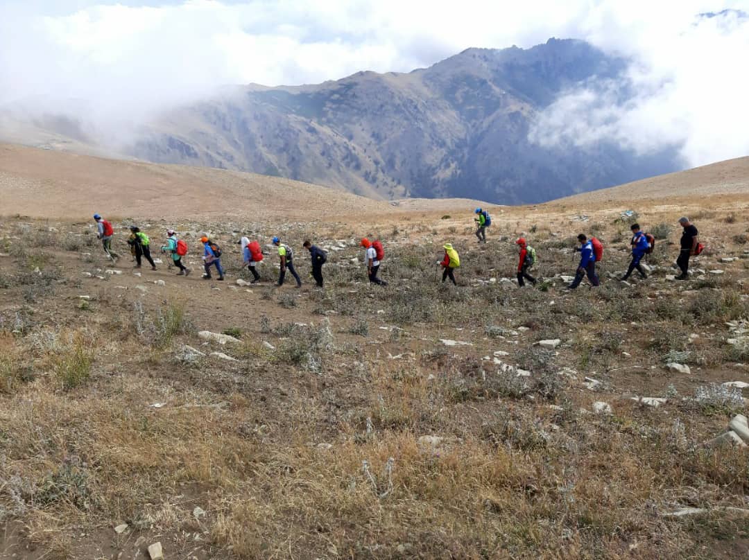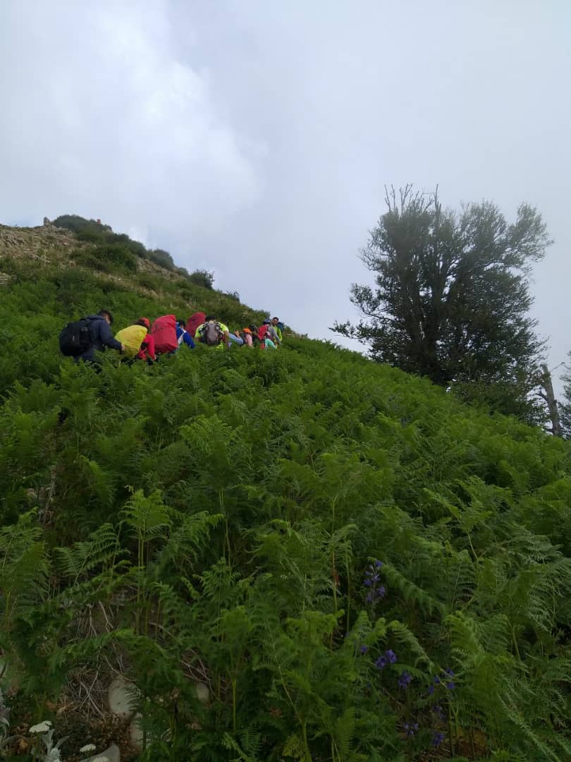 از اینجا کم کم شیب مسیر بیشتر میشود اما بچه ها با گامی مناسب و بدون مشکل در این مسیر پیش می روند. در ساعت 08:46 به استراحت دوم پای درختی که در کنار سیم خاردار در وسط شیب نهایی رسیدن به دوری کله قرار دارد پرداختیم و باهمکاری بچه ها درست در زمان مقرر شده حرکت خود را از سر می گرفتیم.