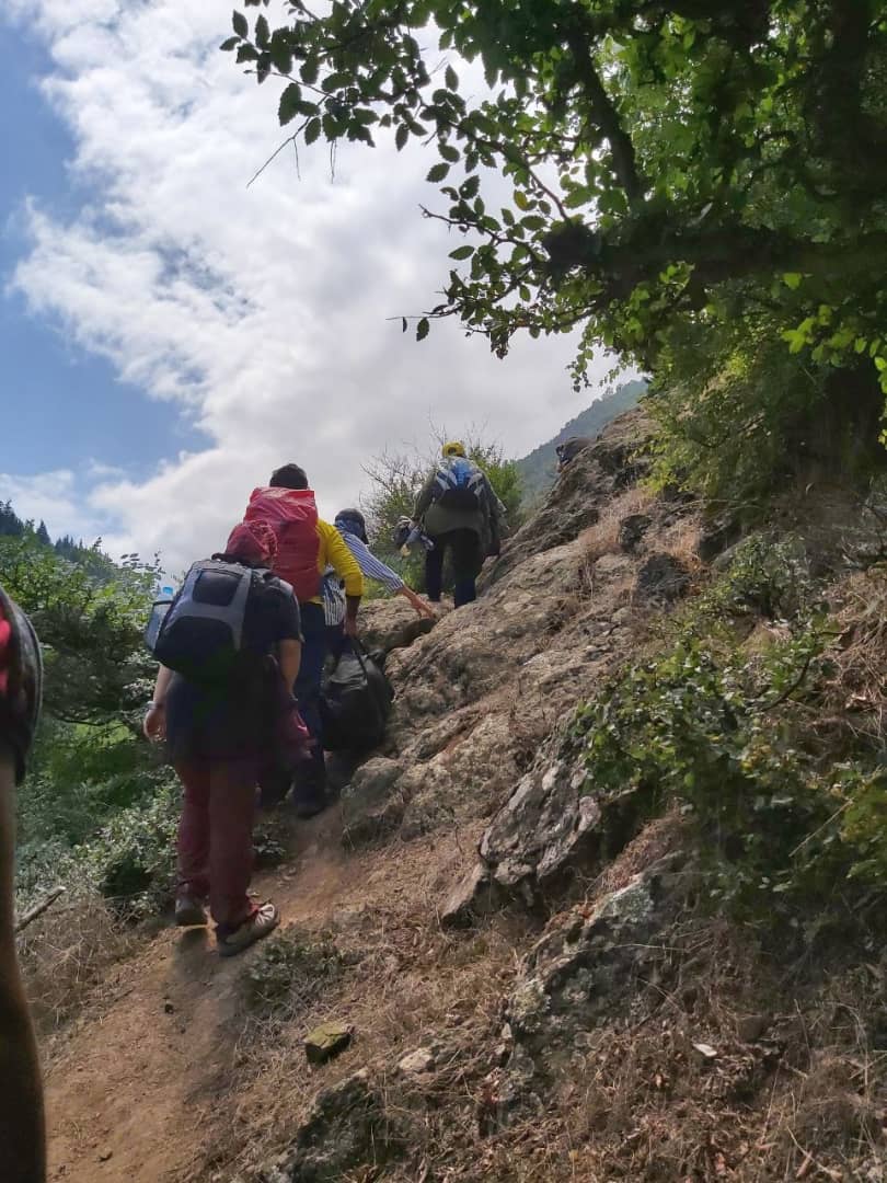 بعد از نیم ساعت حرکت در کنار رودخانه توقف بیست دقیقه ای برای صرف ناهار داشت. بعد از ناهار کوهپیمایی شروع شد. حرکت گروه در امتداد رودخانه بود و بعد از کمی حرکت چالش مسیر آغاز شد . مسیر حرکت پاکوب کوهستانی بود و گروه به صورت منظم و در یک خط در یک شیب ملایم حرکت می کرد.
