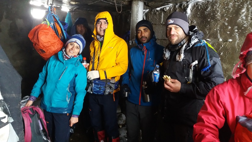 لازم به ذکر است که آب در لوله کیسه آب . بند لباس ها و حتی موی همنوردان یخ زده بود و نشان از سرمای زیاد هوا در آن منطقه بود. سرانجام در ساعت 16:00 به کلبه درویش رسیدیم و در ساعت 16:20 با وانت به سمت پایین راه افتادیم. لباس هایمان خیس بود و سوار شدن در پشت وانت به سرمای بدنمان می افزود.در ساعت 17:20 به راهدارخانه رستم آباد رسیدیم و پس از آماده شدن و سوار شدن در خودرو ها در ساعت 19:30 به انزلی رسیدیم.