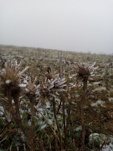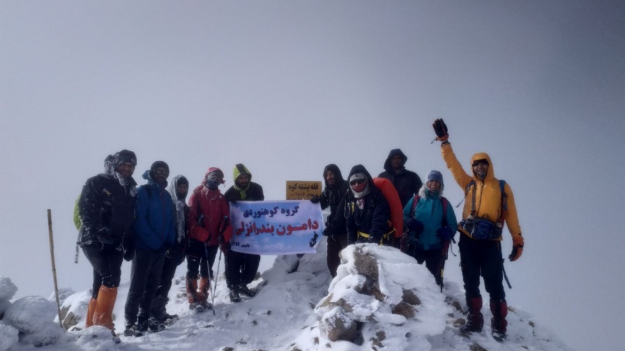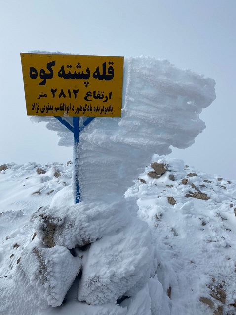 و در وزش باد شدید که دانه های ریز برف را به صورتمان می کوبید و آفتابی که برای لحظه ای در آن مه پدیدار شد در ساعت 12:30 به قله زیبای پشته کوه در ارتفاع 2812 متری رسیدیم.