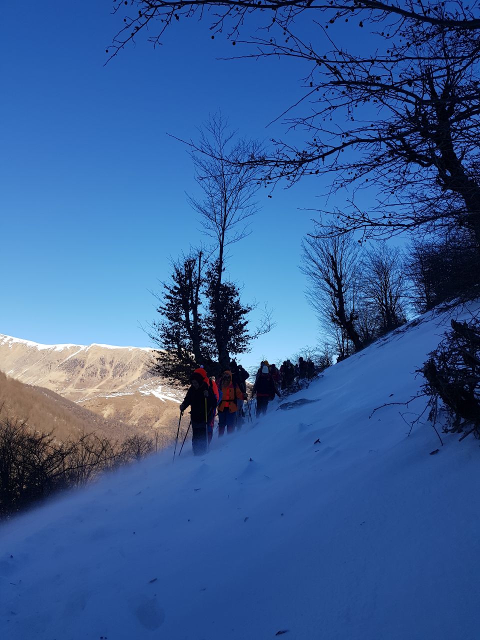 سپس در ساعت ۷:۱۵ دقیقه گروه شروع به حرکت کرد. در ابتدای مسیر یخ زدگی زیادی وجود داشت و در قسمتهای بالاتر برف زیادی نشسته بود ولی گروه به طور منظم و با ریتم متوسط حرکت می کرد.