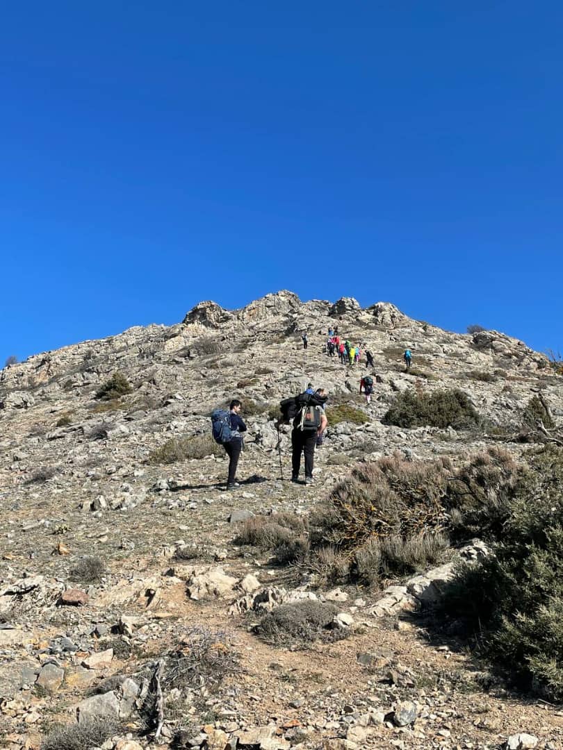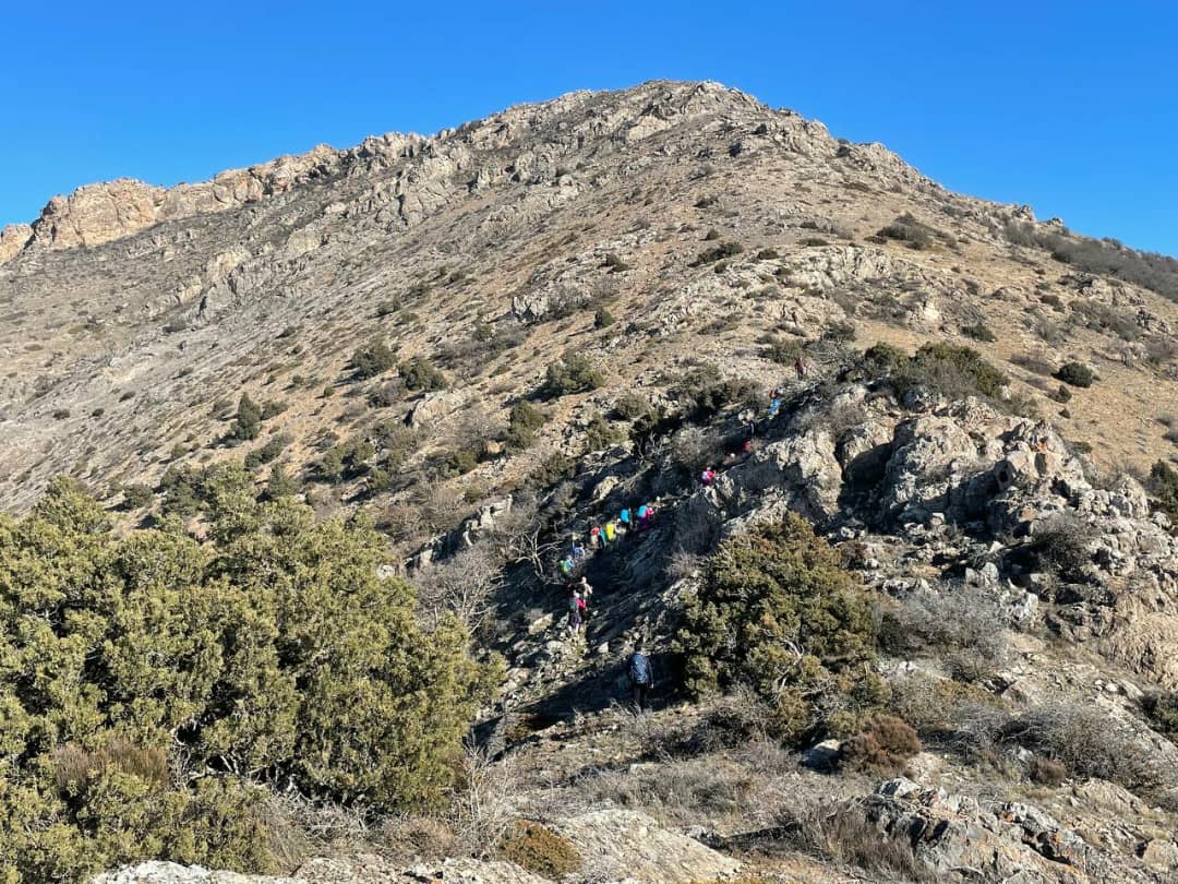 ساعت ۰۸:۲۰ شروع به پیمایش به سمت قله کرده و از مسیر جنوبی قله گاوکل که دارای شیب تند و سنگلاخی و لغزنده بود عبور کرده و در نزدیکی قله تکه هایی از مسیر را دست به سنگ عبور کردیم و لازم به ذکر است که در اوایل زمستان بر خلاف تفکرات همنوردان با آفتاب گرم و سوزان تابستانی رو به رو شدیم.