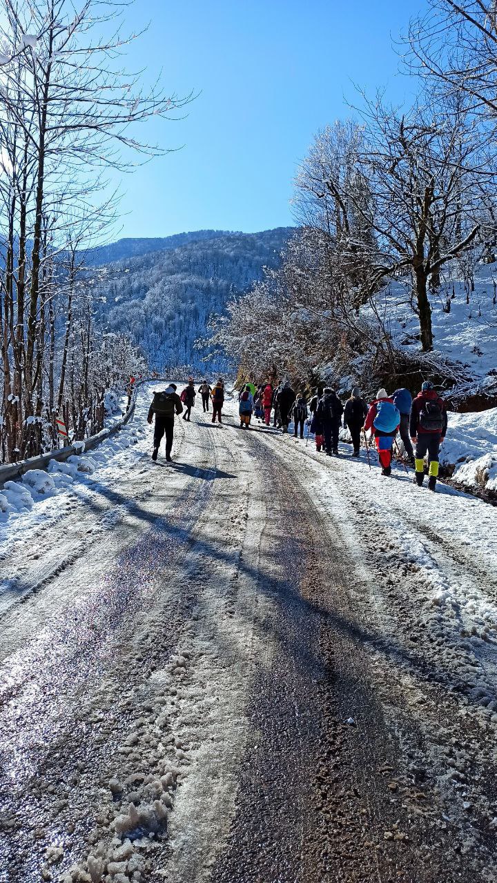 گروه راس ساعت ۶:۰۰ از بندرانزلی خارج شد و از مسیر جیرده به سمت شفت حرکت کرد. دمای هوا بسیار پایین بود و آثار برف شب گذشته در دوسوی جاده دیده می شد. در بخشی از مسیرمان از بین زمینهای زراعتی و مزارع عبور کردیم و درحدود ۸:۳۰ وارد جاده کوهستانی و پر پیچ و تاب امامزاده ابراهیم شدیم. در یک سوی جاده کوه قرار داشت و در سوی دیگر رودخانه ای جاری بود. سطح جاده یخ زده و لیز بود و عبور و مرور به کندی صورت می گرفت. درنهایت ساعت ۹:۵۰ به مقبره بابا رکاب رسیدیم و راننده ها اعلام کردند که بدلیل لغزندگی جاده امکان ادامه مسیر با مینی بوس وجود ندارد و بقیه مسیر باید بصورت پیاده ادامه داده شود. پس از صحبت های سرپرست و معرفی عوامل گروه، ساعت ۱۰:۱۰ به مسیر خود ادامه دادیم
