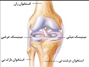 - مینیسک ها تکه هایی نعل اسبی شکل از غضروف هستند که مانند یک بالشتک بین استخوان فمور ( ران ) و ساق پا قرار گرفته اند و نیروهایی را که به زانو وارد می شوند، جذب می کنند تا فشار کمتری به مفصل وارد شود و سبب افزایش سطح تماس در استخوان فوق و افزایش پایداری مفصل زانو می شوند .