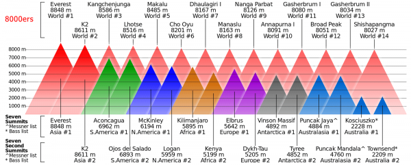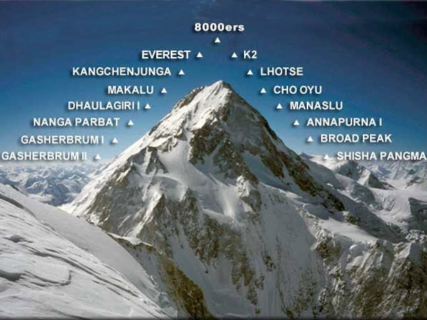چهارده قله بلند و مرتفع 8000 متری جهان در رشتهکوههای هیمالیا و قراقوروم در قارهٔ آسیا و در میان کشورهای هند، چین، پاکستان و نپال واقع شده است، هشت هزار متریها ( The Eight-thousanders) 14 کوه مستقل هستند که ارتفاعشان از سطح دریا به بیش از ۸۰۰۰ متر میرسد و عنوان بلندترین قله های جهان دارند.