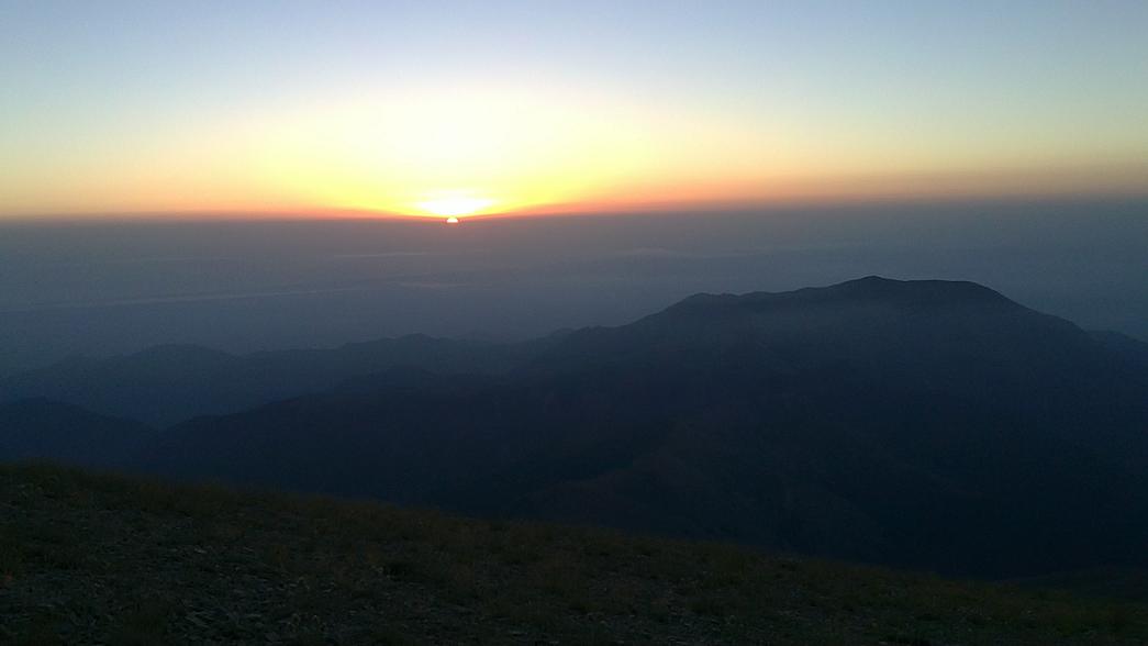 ساعت 5:15 به منطقه پاگرد رسیدیم. یک منطقه دشتی که چوپانها گوسفندها را برای چرا آنجا نگه می دارند که فکر می کنم ارتفاع آنجا حدود 3000 متر است. پس از پاگرد حدود 45 دقیقه مسیر شیبداری را داریم که به تدریج به شیب مسیر اضافه می شود. طلوع زیبای خورشید راکه حدود ساعت 6:07 بود روی این مسیر تماشا کردیم و ساعت 6:35 دقیقه همگی با هم به قله زیبای شاه معلم رسیدیم. قرار شد در حدود یک ساعت و نیم روی قله بمانیم.