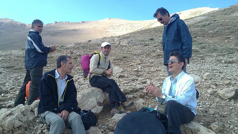 هوای بسیار خوبی داشتیم. در ساعت 7:20 نزدیک دشتی که بعد تخته سنگها به آن می رسیدیم یک ربعی استراحت کردیم و در ساعت 8:00 به دشتی قبل از خط الراس رسیدیم. به گفته سرپرست قرار شد حدود نیم ساعتی صرف صبحانه و استراحت شود. هنگام خوردن صبحانه آقای راوند با دف نوازی و خواندن اشعار محلی فضای لذت بخشی را بوجود آوردند.