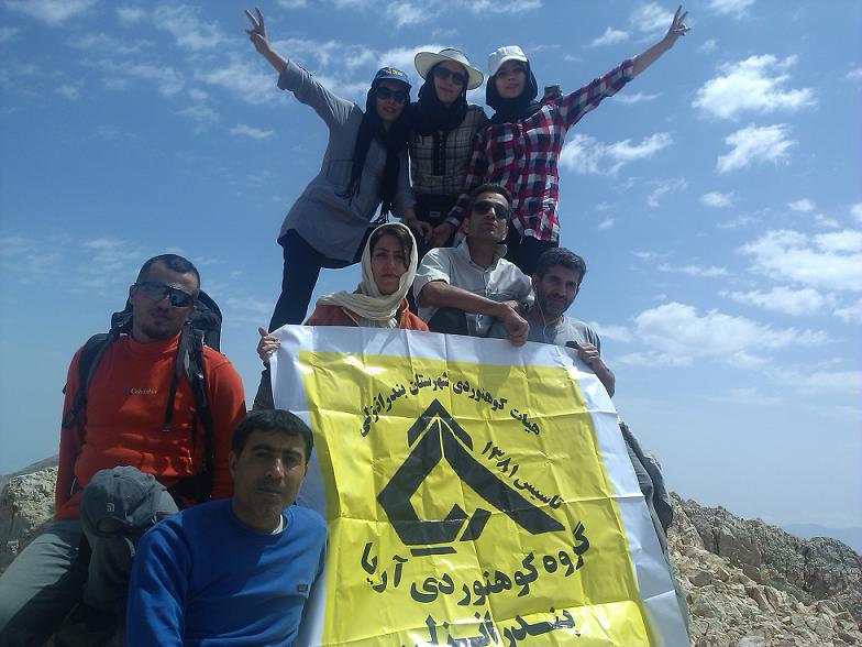 ساعت 8:40 به سوی خط الراس حرکت کردیم و 10:15 روی خط الراس بودیم. گرمای آفتاب زیاد بود ولی هوای خوبی داشتیم و از وزش باد شدید هم خبری نبود. حدود 25 دقیقه ای استراحت کرده و 10:40 دقیقه حرکت کردیم. با همت دوستان که خیلی از آنها اولین بار به این قله صعود می کردند در ساعت 11:30 به قله رسیدیم و جشن صعود را بر روی قله برپا کردیم.