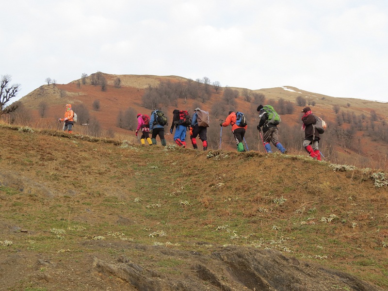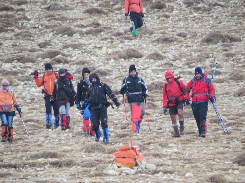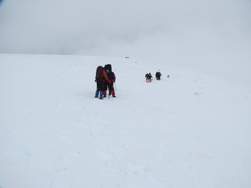 در مسیر دوستانمان از گروه ناتشکوه املش را دیدیم و همچنین یک گروه از قزوین که آقای کاظمی راهنمایی آنها را عهده دار بود. گروه ما نیز خیلی جلوتر در حرکت بود. پس از گذشتن از خط الراس در مسیر سیم خاردار به گروه رسیدیم و قبل از رسیدن به پاگرد باد شدیدی شروع به وزیدن کرد. باد به همراه دانه های برف با سوز زیاد به صورت هایمان برخورد می کرد. به علت شدت وزش باد که خیلی جاها تعادلمان را بر هم می زد پس از مشورت با راهنما در بیست دقیقه ای قله در ساعت 12:05 به سمت پایین برگشتیم.