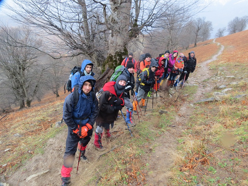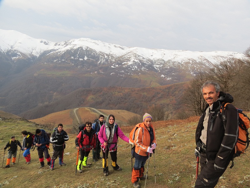 ساعت 3:30 بامداد جمعه از بی بی حوریه حرکت کردیم و ساعت 4:05 آخرین نفر را نزدیک بیمارستان سوار کرده و راه افتادیم. در ساعت 5:55 به ماسوله رسیدیم. قرار بود با مینی بوس تا جاده دوریکله برویم و صعود را از آنجا آغاز کنیم. ساعت 6:45 در جاده دوریکله بودیم. باد شدیدی می وزید و حکایت از صعودی پر تلاش را داشت. پس از خوردن صبحانه در مینی بوس آقای بشردوست (راننده بسیار دقیق و وقت شناس) در ساعت 7:15 حرکت کردیم. حدود 45 دقیقه ای از مبدا صعود دور شده بودیم که یکی از دوستان تصمیم گرفت برگردد و آقای گنجی زحمت برگشت ایشان را به عهده گرفتند.