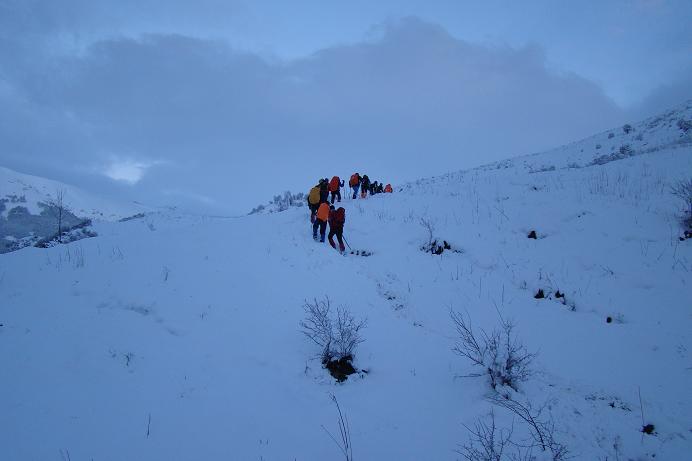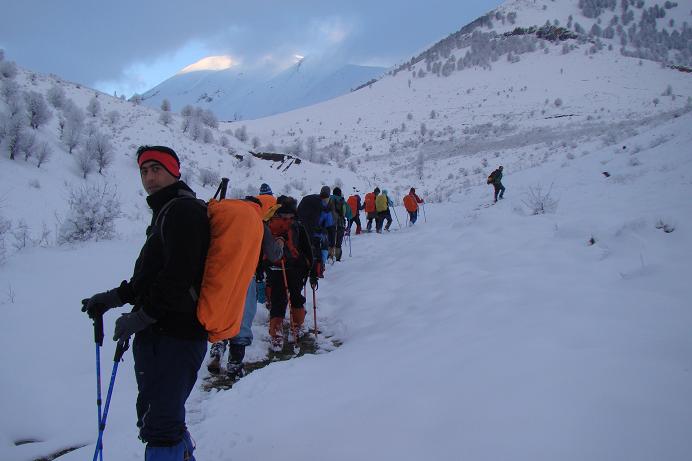 شروع حرکت ما در ساعت 5:45 از جاده پایین امامزاده آغاز شد. بر خلاف تصور من که فکر می کردم از یال با برف مواجه می شویم از همان ابتدا برف زیادی بر زمین نشسته بود. هوا بسیار عالی بود و اثری از خورشید در آسمان نبود. قدری مه داشتیم که کم و زیاد می شد. در ساعت 6:45 به گروه رسیدیم (زیر جاده دوریکله) و آقای کیایی فر پس از دیدار دوستان به علت اینکه باید زودتر بر می گشتند به صعود خود ادامه دادند و من با گروه راهی شدم.