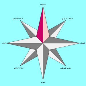 جهات فرعی عبارت اند از : شمال غربی – شمال شرقی – جنوب شرقی – جنوب غربی