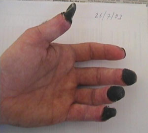 بعد از یک هفته : تورم ، نکروز بافتی ، تغییر شکل عضو مبتلا