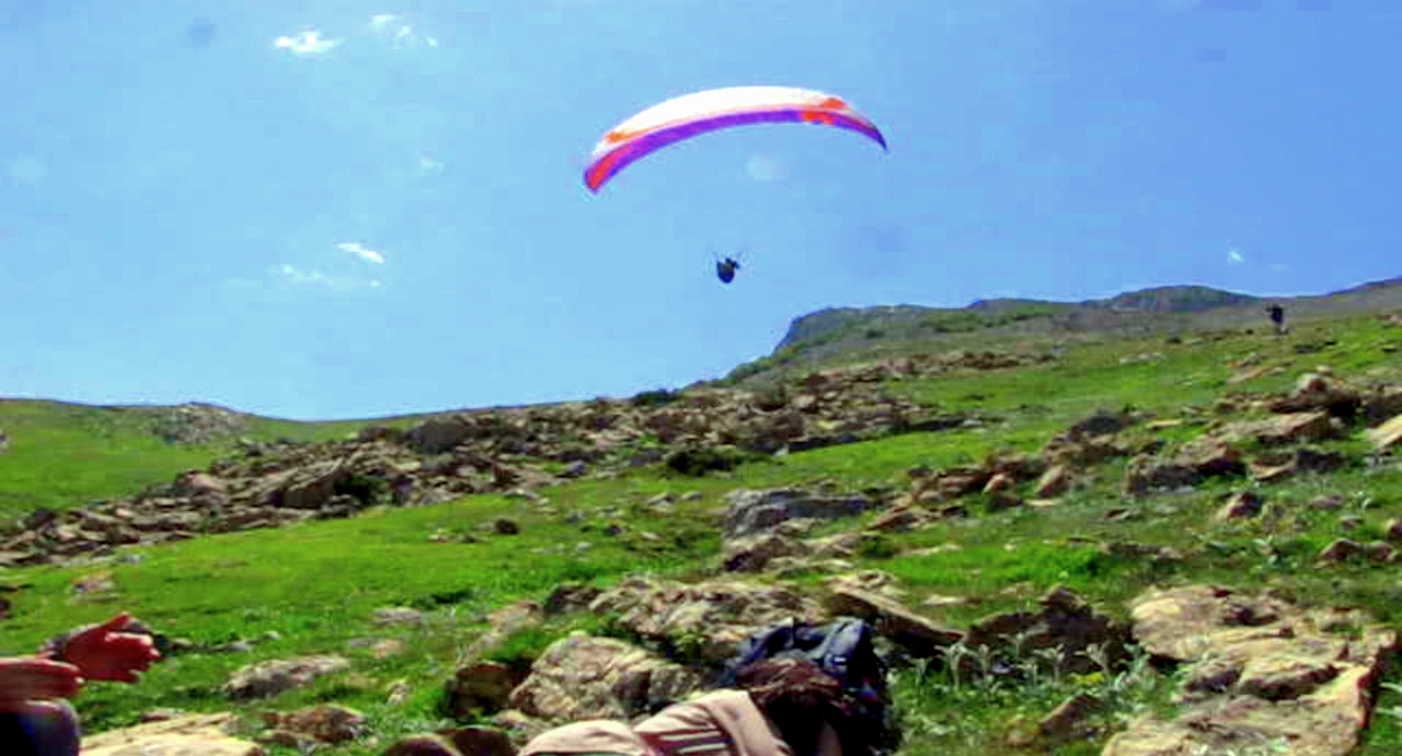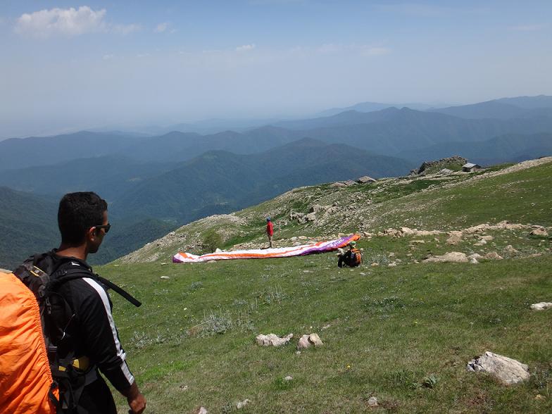 نکته بسیار جالب این است که دامنه شمالی درفک جنگلی است و به دشت گیلان و دریای کاسپین مشرف است در حالیکه دامنه جنوبی کاملا کوهستانی و بدون درخت و جنگل می باشد. وقتی به قله می رسید این نکته را کاملا در می یابید. آقای رحمت دوست خود را برای پرواز آماده کرد ولی به دلیل مناسب نبودن باد تصمیم گرفت در منطقه اشتنیف پرواز خود را انجام دهد.