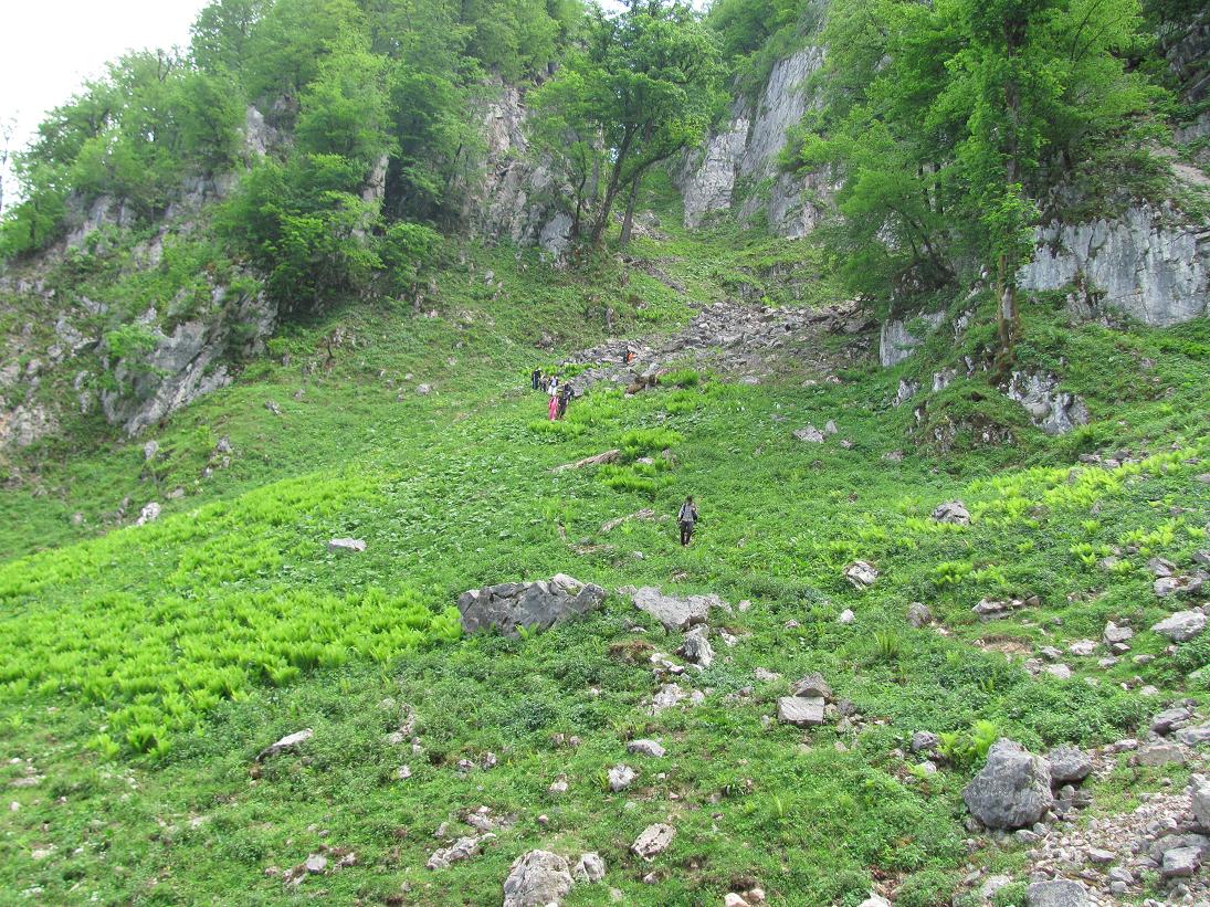مسیر فوق العاده زیبا بود و ما در ساعت 12:35 از کنار سنگ بزرگ عبور کردیم و وارد مسیر جنگلی شدیم. یک قسمت به علت شسته شدن مسیر به کمک طناب̨ چند متری را پایین آمدیم و پس از پایین کشیدن از یک تنگه بسیار زیبا (همه چیز تکمیل شد با این دره نوردی که آن را نیز تجربه کردیم) که عظمت آن را وقتی در می یابی که به پشت سر خود بنگری و ابهت دیواره های اطراف را ببینی که تو را احاطه کرده اند و با یک هارمونی زیبا و منظم تو را به پایین هدایت می کنند. سپس روی پاکوبی مشخص به سمت چادرها حرکت کردیم.