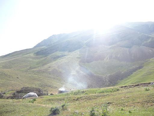 با پایین کشیدن از یک شیب تند در ساعت 4:30 به منطقه سه چشمه رسیدیم و صعود به پایان رسید. از آب بسیار خنک و گوارای چشمه نوشیدیم و دقایقی در کنار چشمه پاهای خود را به آب زدیم. در این منطقه مسافرانی حضور داشتند که از اردبیل و خلخال آمده بودند. آقای ملک پور که زودتر پایین آمده بودند با وانت منتظر ما بودند. 4:45 همگی سوار شده و راه افتادیم. نیم ساعت بعد یعنی در ساعت 5:15 به سله یوردی و منزل آقای محفوظی رسیدیم و داخل منزل رفته و ناهار خوردیم. ایشان و خانم شان با هندوانه و کیک و چای از ما پذیرایی کردند. سهند کوچولو پسر آقای محفوظی که از دیدن ما انگار خیلی شاد و خوشحال بود نیز در کنار ما حضور داشت طوریکه موقع رفتن از آنجا صدای گریه و جیغ سهند که دوست داشت با ما بیاید همه ما را ناراحت کرد( از اینکه به خاطر ما گریه می کرد و ما داشتیم جدا می شدیم ).