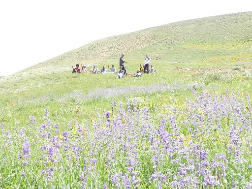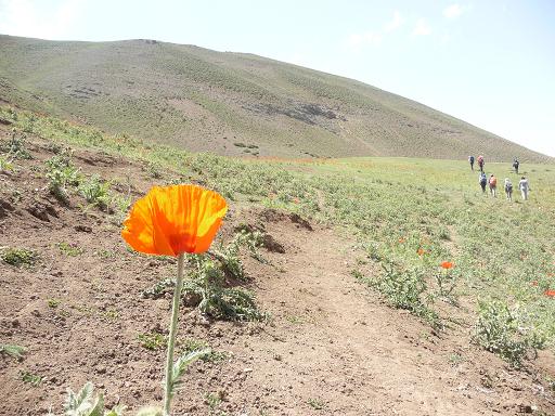 چون آفتاب شدید بود و بچه ها ناهار نخورده بودند مقداری در مسیری که برای برگشت طولانی تر به نظر می رسید خسته شدند. به مکانی رسیدیم که پر از شقایق بود