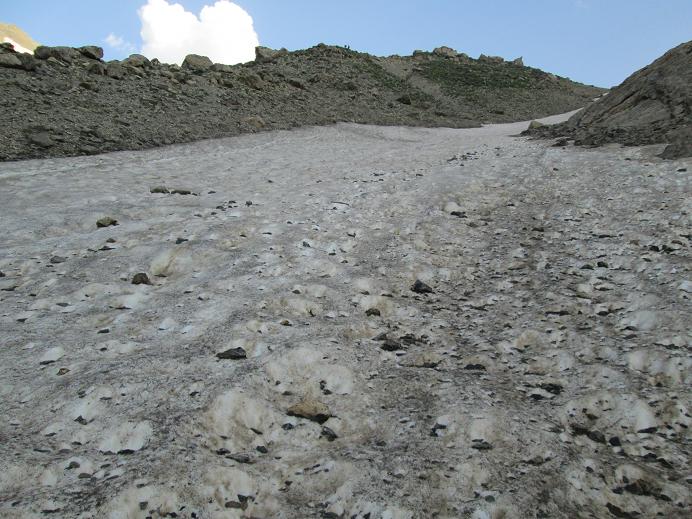 در اینجا درست در غرب قله قرار داریم که تقریبا با دور زدن قله آن را از شرق صعود می کنیم. در سمت راست (غرب) قله کندیگان و در سمت چپ(شرق) سیالان قرار دارد. وزش باد بر روی گردنه فوق العاده شدید است. ارتفاع گردنه ۳۸۴۸ متر است. می توان گفت این گردنه مرز بین استان قزوین و مازندران است و به سمت قله حرکت می کنیم. پاکوپ تا قله کاملا پیداست و قله را دور می زند. ساعت9:00 بر فراز قله 4200 متری سیالان می ایستیم و بعد از نیم ساعت استراحت و گرفتن عکس یادگاری ساعت 9:30 به سمت پایین حرکت میکنیم