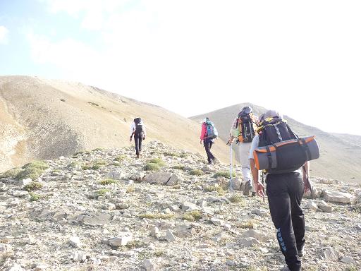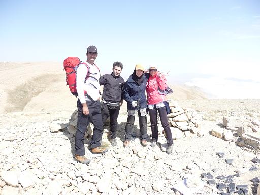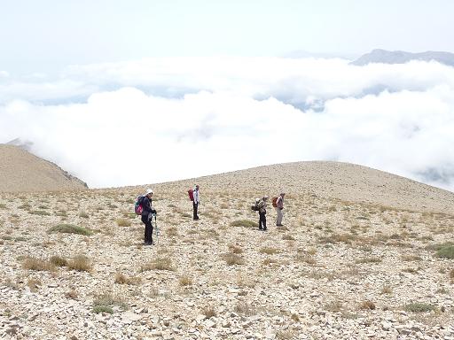روی قله باد نسبتا شدیدی از سمت جنوب شرقی می وزید و ما در داخل گودی کنده شده روی قله نشستیم و پس از خوردن بیسکویت و نوشیدن آب و گرفتن عکس در ساعت 10:40 به راه افتادیم.