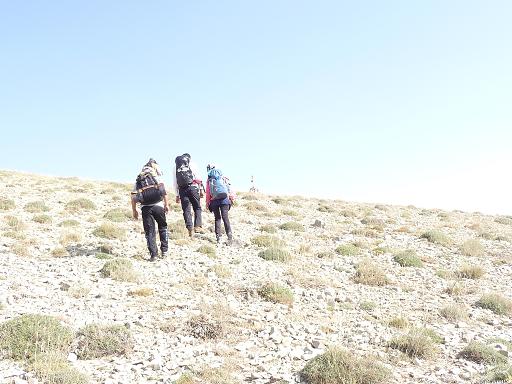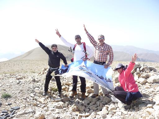 در ساعت 9:15 به منطقه بالای پاگرد و به فلش شماره 15 رسیدیم. ( به همت کوهنوردان منطقه این مسیر تا قله با تابلو های فلزی علامت گذاری شده ) ارتفاع در این مکان طبق جی پی اس 2905 متر بود. تصمیم گرفته شد که از زیر قله اول به سمت قله سوم پیش برویم و دیگر به قله اول (ارتفاع : 3058) صعود نکنیم. در ساعت 9:40 به قله دوم رسیدیم و پس از کشیدن به سمت پایین و رسیدن به پای قله سوم در ساعت 9:53 و نوشیدن آب شیب تند قله سوم را بالا کشیدیم و اولین نفر ( آقای شیر جهانی) در ساعت 10:03 به قله رسید و ما شش دقیقه بعد یعنی 10:09 به قله رسیدیم.