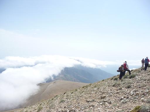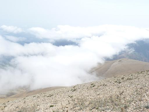 شیب تند را در زیر آفتاب داغ مرداد پایین کشیده و در ساعت 1:05 ظهر به هفتی که مکان صبحانه خوردنمان بود رسیدیم. مه کم کم داشت به سمت بالا می رفت و در سمت چپ ما منظره بسیار زیبایی پدید آورده بود. دریایی از ابر در هوا گسترده بود...